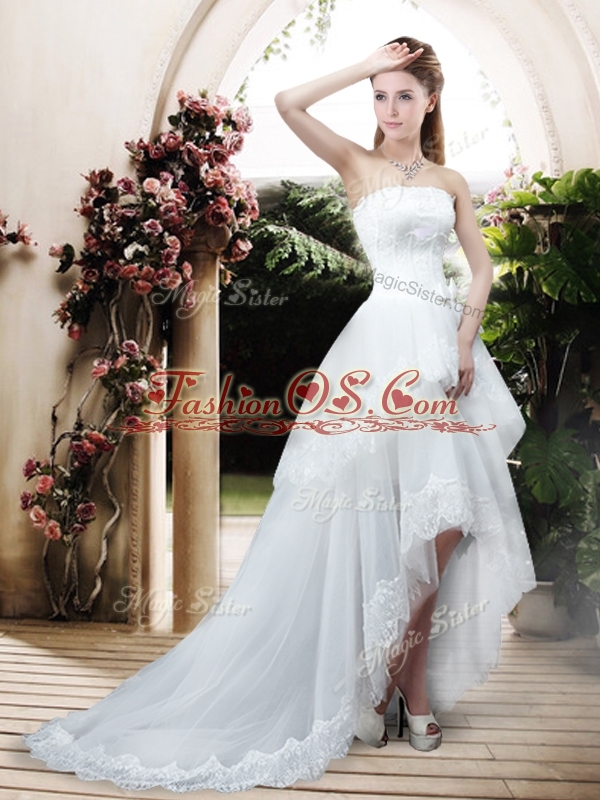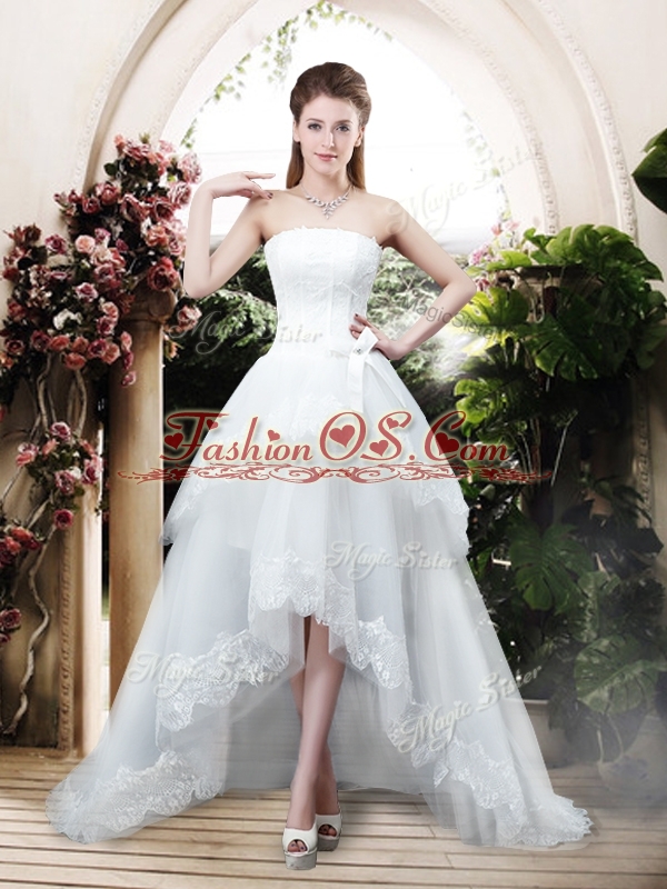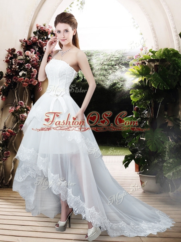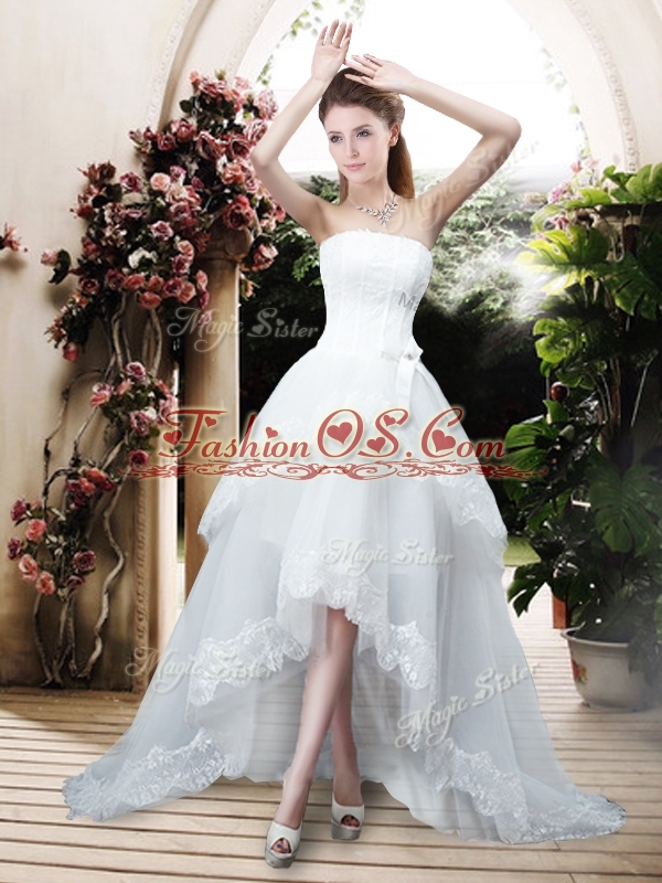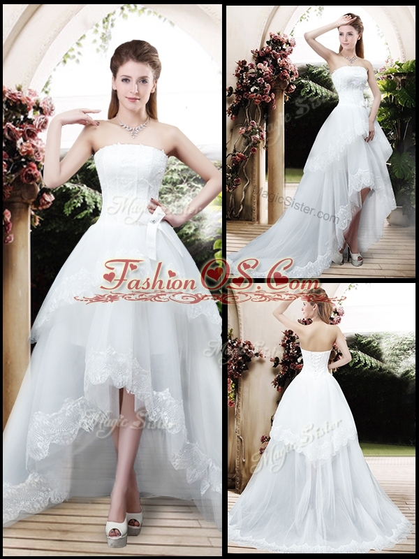 Perfect Bowknot and Lace Wedding Dresses with High Low
