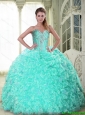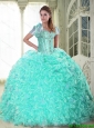 Perfect Brush Train Ball Gown Quinceanera Dresses with Beading and Ruffles For 2015 Summer