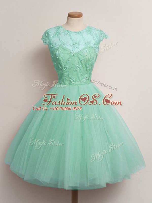 Perfect Cap Sleeves Lace Up Knee Length Lace Wedding Guest Dresses