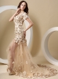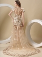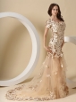 Home >  Special Occasion Dresses >  Celebrity Dresses > Perfect Champagne Wedding Dress With Special Fabric Short Sleeves