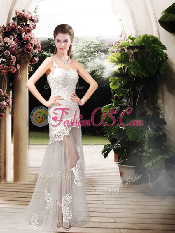 Home >  Wedding Dresses >  Romantic Wedding Dresses > Perfect Column One Shoulder Wedding Dresses with Lace