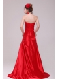 Perfect Column Strapless Brush Train Red Beading and Ruching Prom Dress