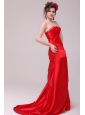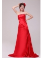 Home >  Prom Dresses >  Plus Size Prom Dresses > Perfect Column Strapless Brush Train Red Beading and Ruching Prom Dress