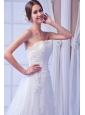 Perfect Column Strapless Court Train Lace Sashes Wedding Dress