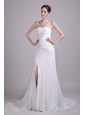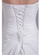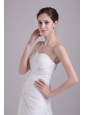 Romantic and elegant! The bodice features the all over pleated sweetheart neckline. The waistline is adorned with the scattered crystal. The lace up back completes the look. The skirt is accented with the slit. The slim skirt is complete with a sweep train. You will be the beautiful and fashion bride in the wedding ceremory.