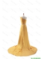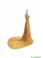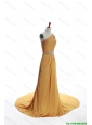 Perfect Exquisite One Shoulder Beading Gold Prom Dresses with Court Train