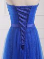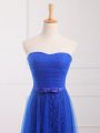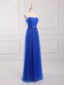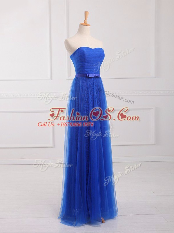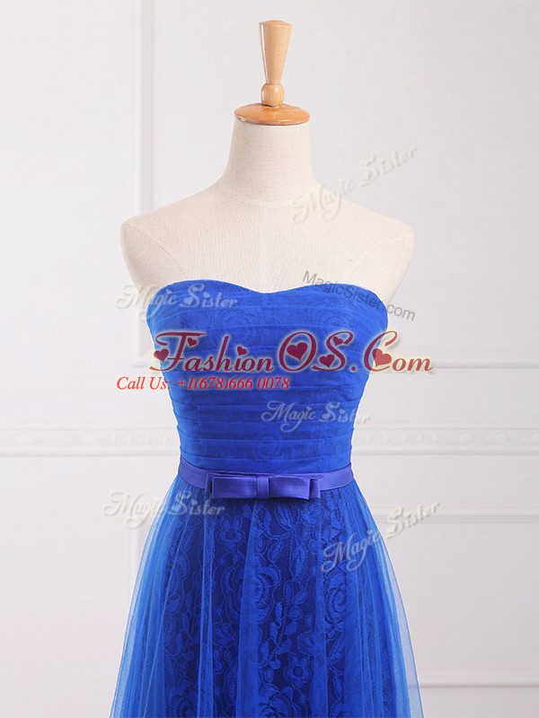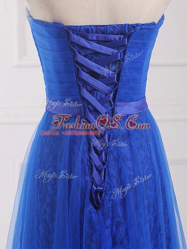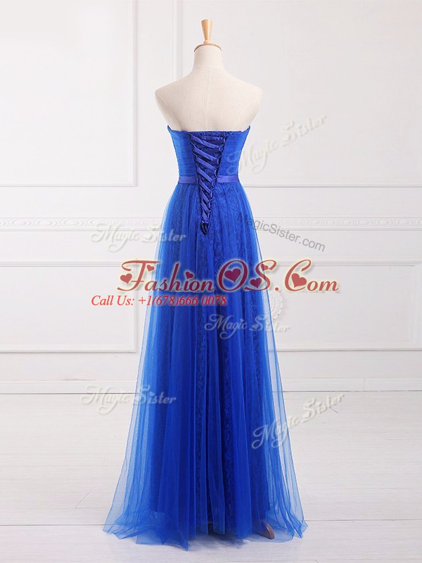 Perfect Floor Length Empire Sleeveless Royal Blue Bridesmaid Gown Lace Up
