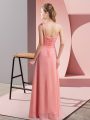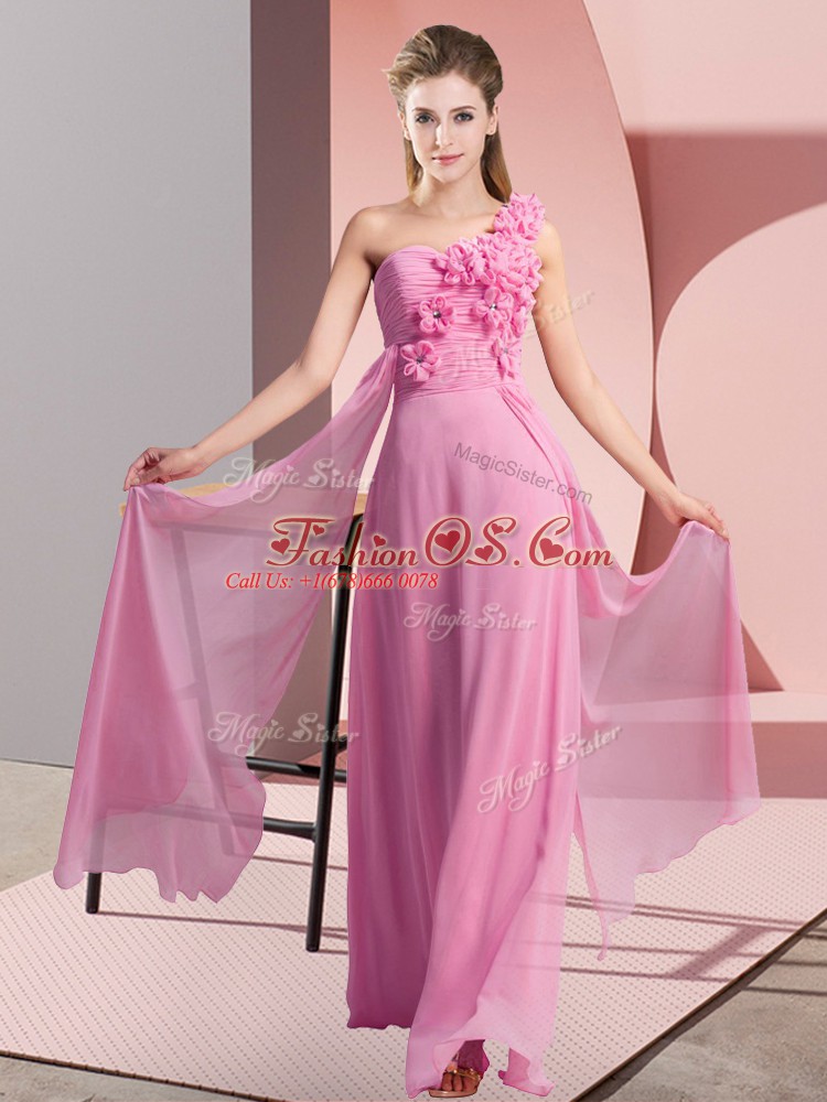 Perfect Floor Length Lace Up Quinceanera Court of Honor Dress Rose Pink for Wedding Party with Hand Made Flower