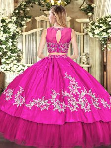 Perfect Floor Length Zipper Sweet 16 Dresses Hot Pink for Military Ball and Sweet 16 and Quinceanera with Beading and Appliques