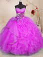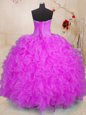 Perfect Fuchsia Lace Up 15 Quinceanera Dress Beading and Ruffles Sleeveless Floor Length