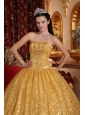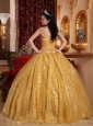 Perfect Gold Quinceanera Dress Sweetheart Sequin Fabric Beading Ball Gown