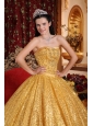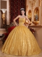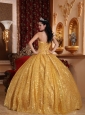 Home >  Quinceanera Dresses >  15 Quinceanera Dresses > Perfect Gold Quinceanera Dress Sweetheart Sequin Fabric Beading Ball Gown