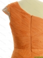Perfect Gorgeous Ruching One Shoulder Orange Prom Dresses with Brush Train