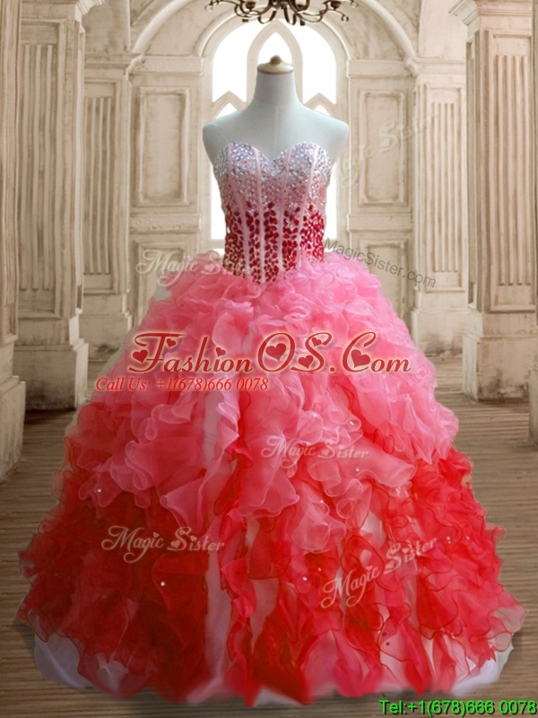 Perfect Gradient Color Organza Quinceanera Dress with Beading and Ruffles