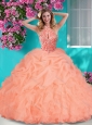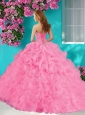 Perfect Halter Top Beaded and Ruffled  Quinceanera Dress with Brush Train