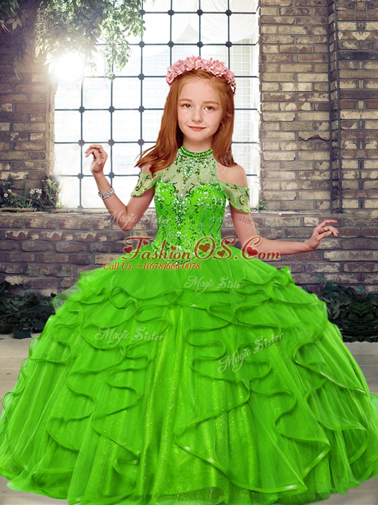 Perfect High-neck Neckline Beading and Ruffles Little Girl Pageant Gowns Sleeveless Lace Up