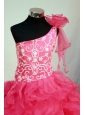 Home >  Special Occasion Dresses >  Little Girl Pageant Dresses > Perfect Hot Pink One Shoulder Neckline Flower Girl Pageant Dress With Embroidery and Flower Decorate Organza