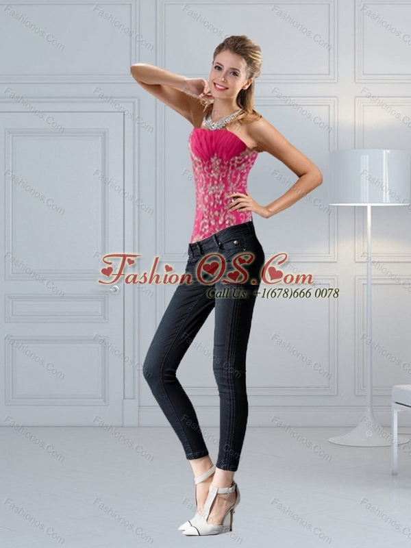 Perfect Hot Pink Sweetheart Corset with Embroidery and Beading