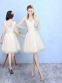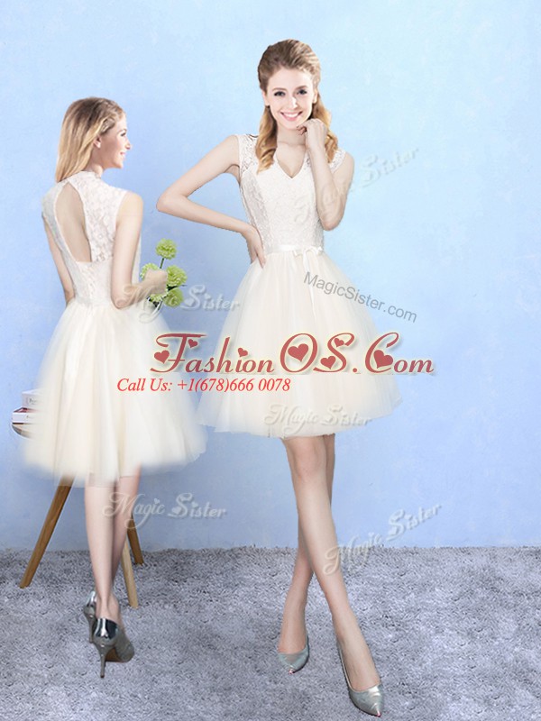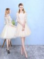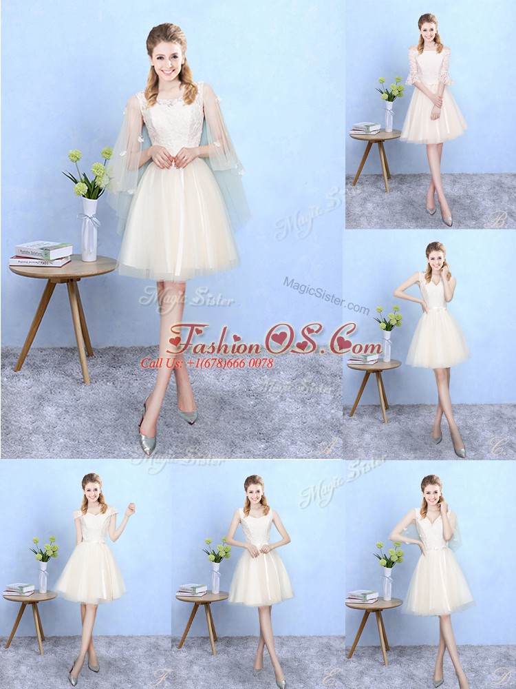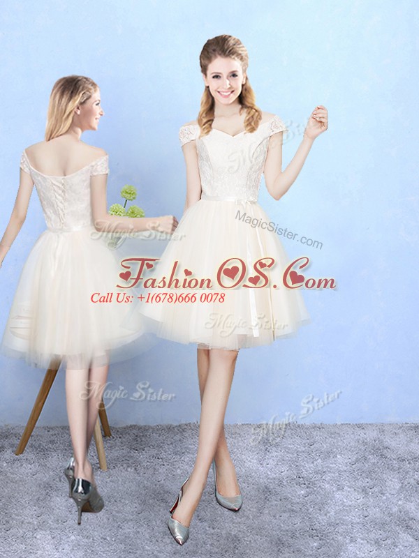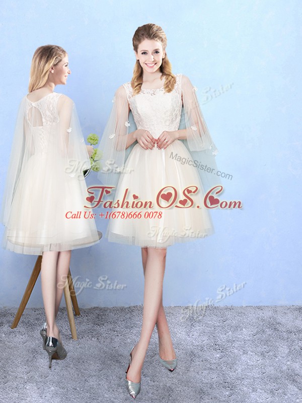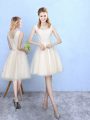 Perfect Knee Length Champagne Quinceanera Court of Honor Dress Tulle Cap Sleeves Lace