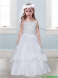 Perfect Laced Spaghetti Straps Tulle Flower Girl Dress in White