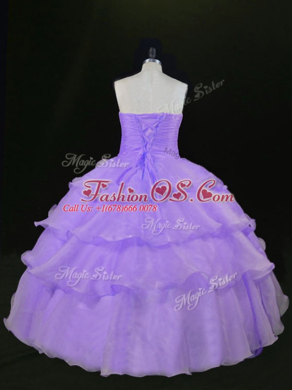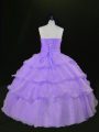 Perfect Lavender Ball Gowns Sleeveless Organza Floor Length Beading and Ruffles Quince Ball Gowns