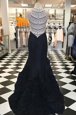 Home >  Special Occasion Dresses >  Celebrity Dresses > Perfect Mermaid Scoop Sleeveless Elastic Woven Satin Sweep Train Side Zipper Celebrity Evening Dresses in Black for with Beading