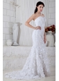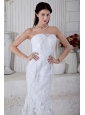 Perfect Mermaid Strapless Special Fabric Wedding Dress Brush Train