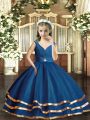 Home >  Special Occasion Dresses >  Beautiful Kids Pageant Dresses > Perfect Navy Blue Ball Gowns Beading Glitz Pageant Dress Backless Organza Sleeveless Floor Length