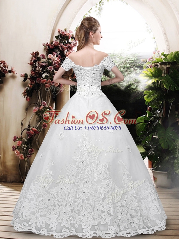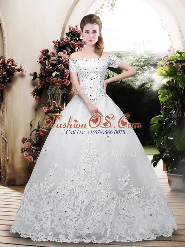 Home >  Wedding Dresses >  Romantic Wedding Dresses > Perfect Off the Shoulder Appliques Wedding Dresses with Cap Sleeves