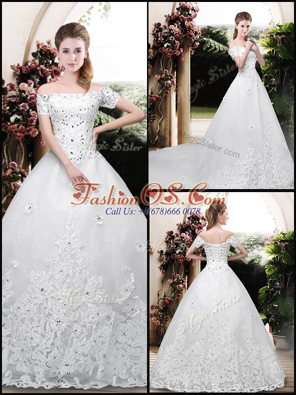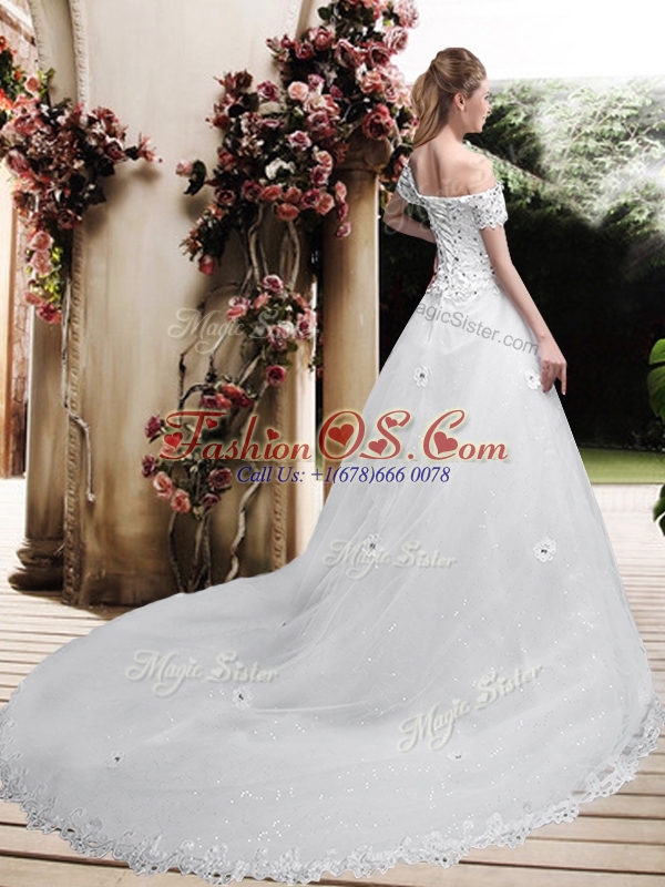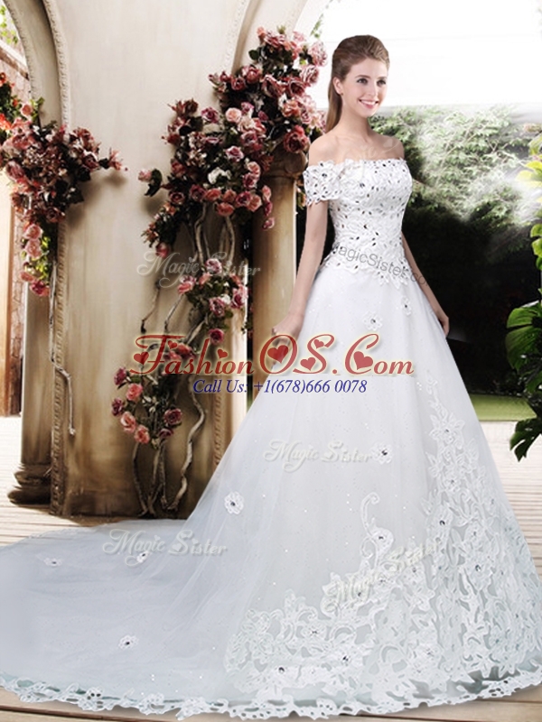 Perfect Off the Shoulder Appliques Wedding Dresses with Cap Sleeves