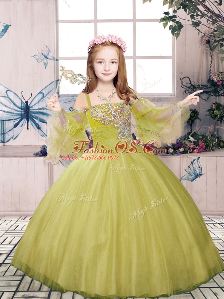 Home >  Special Occasion Dresses >  Beautiful Kids Pageant Dresses > Perfect Olive Green Tulle Lace Up High School Pageant Dress Sleeveless Floor Length Beading