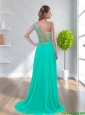 Perfect One Shoulder Empire Beading Prom Dresses in Turquoise