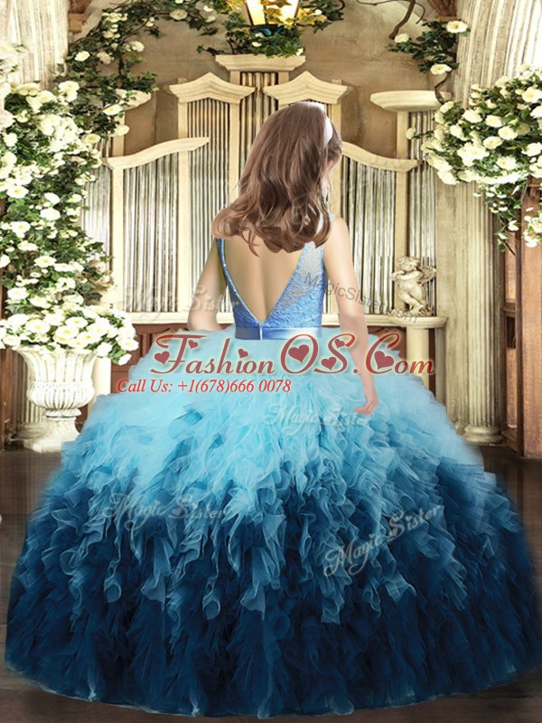 Perfect Pageant Gowns For Girls Multi-color Scoop Tulle Sleeveless Floor Length Backless