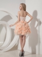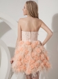 Perfect Pink Column Sweetheart Cocktail Dress Feather Beading and Hand Made Flowers Mini-length