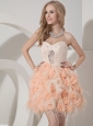 Home >  Special Occasion Dresses >  Cocktail Dresses > Perfect Pink Column Sweetheart Cocktail Dress Feather Beading and Hand Made Flowers Mini-length