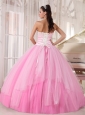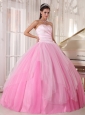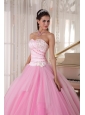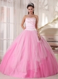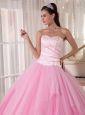 Perfect Pink Quinceanera Dress Sweetheart Tulle Beading Ball Gown