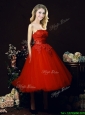 Home >  Special Occasion Dresses >  Cheap Dama Dresses > Perfect Puffy Skirt Strapless Applique Tea Length Red Dama Dress