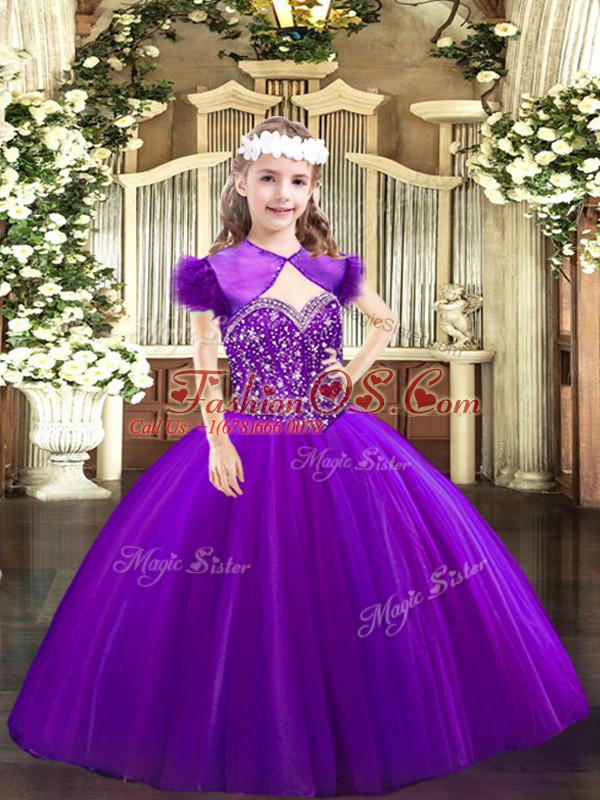 Home >  Special Occasion Dresses >  Pretty Little Girl Pageant Dresses > Perfect Purple Pageant Gowns For Girls Party and Quinceanera with Beading Straps Sleeveless Lace Up