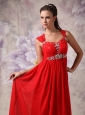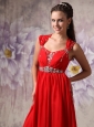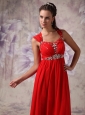 Home >  Evening Dresses > Perfect Red Empire / Princess Evening Dress Straps Chiffon Beading Floor-length