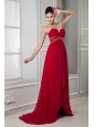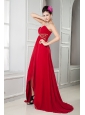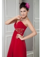 Home >  Evening Dresses > Perfect Red Empire Sweetheart Evening Dress Chiffon Beading Brush Train