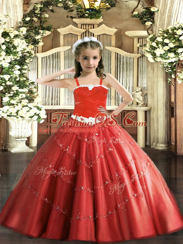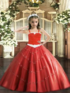 Perfect Red Sleeveless Tulle Lace Up Little Girls Pageant Dress for Party and Quinceanera