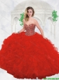 Perfect Red Sweet 16 Gowns with Beading and Ruffles