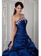 Perfect Royal Blue Ball Gown Strapless 15 Quinceanea Dress Taffeta Appliques Floor-length
