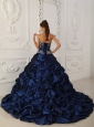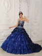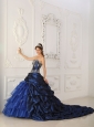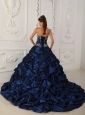 Perfect Royal Blue Quinceanera Dress Sweetheart Chapel Train Taffeta and Organza Appliques Ball Gown