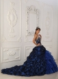 Home >  Quinceanera Dresses >  Popular Quinceanera Dresses > Perfect Royal Blue Quinceanera Dress Sweetheart Chapel Train Taffeta and Organza Appliques Ball Gown
