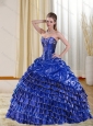 Perfect Royal Blue Sweetheart Quince Dress with Beading and Ruffled Layers