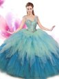 Perfect Ruffled Brush Train Ball Gowns Sweet 16 Quinceanera Dress Apple Green Scoop Tulle Sleeveless Lace Up