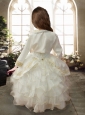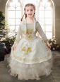 Perfect Ruffled Layers White Little Girl Pageant Dress with Gold Embroidery