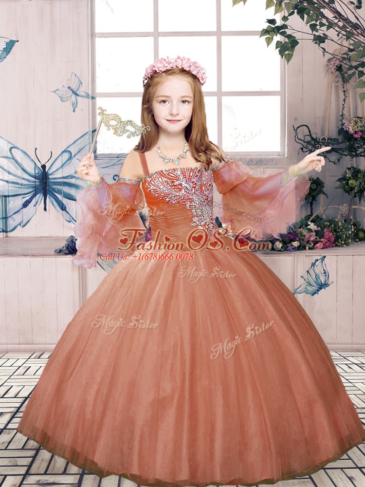 Home >  Special Occasion Dresses >  Pretty Little Girl Pageant Dresses > Perfect Rust Red Straps Neckline Beading Little Girls Pageant Dress Wholesale Sleeveless Lace Up