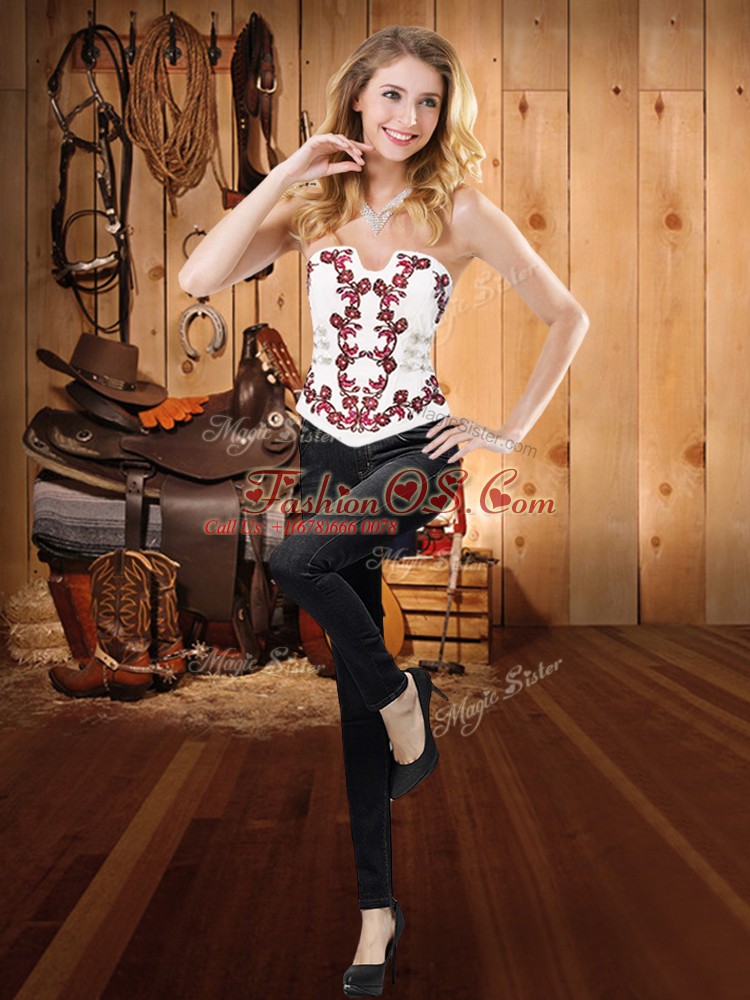 Home >  Quinceanera Dresses >  Detachable Quinceanera Skirts > Perfect Satin and Organza Strapless Sleeveless Lace Up Embroidery and Ruffled Layers Quince Ball Gowns in Burgundy